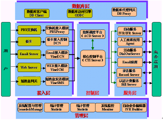『接入能力』:支持電話接入、傳真接入、EMAIL接入、Internet接入、短消息接入,以及WAP接入能力。