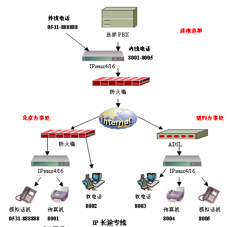 IP長(zhǎng)途專線系統(tǒng),完全針對(duì)政府、企業(yè)等的駐外辦事機(jī)構(gòu)與總部之間的密切聯(lián)系而設(shè)計(jì),使辦事處輕松擁有來自總部的長(zhǎng)途電話專線,令溝通更加迅捷,而且完全免除長(zhǎng)途話費(fèi)的困擾,安裝和使用都極其簡(jiǎn)單,無需對(duì)原有電話設(shè)備進(jìn)行任何改造。