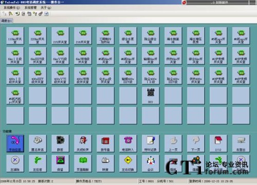 調(diào)度員通過觸摸屏(或者鍵盤鼠標(biāo))控制操作調(diào)度系統(tǒng),操作臺(tái)可以使用12個(gè)功能頁頁面。每個(gè)頁面共有22個(gè)功能按鍵和55個(gè)調(diào)度業(yè)務(wù)按鍵,55個(gè)調(diào)度業(yè)務(wù)按鍵可以根據(jù)具體調(diào)度業(yè)務(wù)需要靈活地編輯設(shè)置成直通呼叫鍵或組呼鍵。