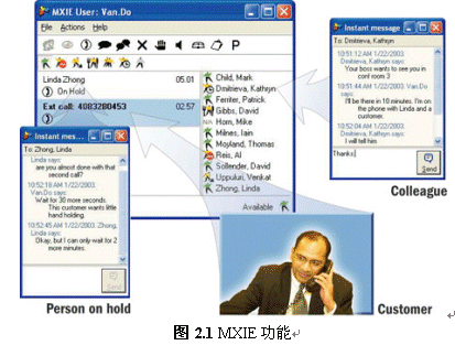 使用MXIE還提供了文本交流、收發(fā)語音郵件、收發(fā)傳真、發(fā)起電話會議或視頻會議、綁定話機等多種實用的溝通功能。除此以外,MXIE還集成了軟件電話功能,用戶外出時可以使用它來接聽或撥打電話。