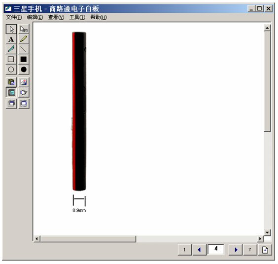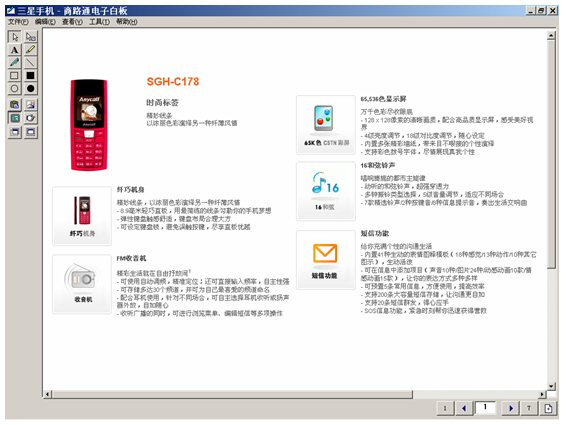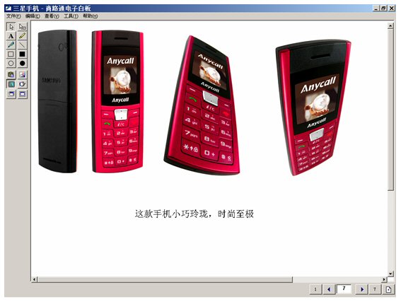 坐席進入富媒體知識庫,調出三星手機,啟動電子白板,將這個畫面推送給客戶。
