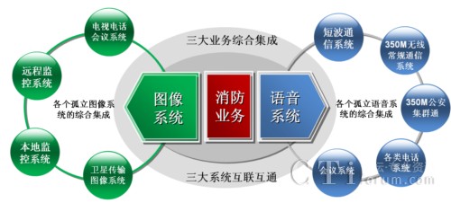 綜合集成建設(shè)主要內(nèi)容:建設(shè)一個(gè)統(tǒng)一的綜合管理平臺(tái),將軟硬件進(jìn)行高度集成,實(shí)現(xiàn)圖像、語(yǔ)音、數(shù)據(jù)高度融合,形成統(tǒng)一的信息資源樹(shù),按需調(diào)用,資源共享。并通過(guò)網(wǎng)絡(luò)集成,實(shí)現(xiàn)各類基礎(chǔ)通信網(wǎng)絡(luò)“通道化”,形成統(tǒng)一互聯(lián)的IP網(wǎng);通過(guò)音頻集成,實(shí)現(xiàn)語(yǔ)音交換“總機(jī)化”,語(yǔ)音終端“分機(jī)化”;通過(guò)視頻集成,實(shí)現(xiàn)視頻管理 “頻道化”;通過(guò)數(shù)據(jù)集成,實(shí)現(xiàn)數(shù)據(jù)管理 “目錄化”,全面滿足日常管理和戰(zhàn)時(shí)通信保障的要求。綜合集成項(xiàng)目包括圖像綜合管理平臺(tái)、語(yǔ)音綜合管理平臺(tái)、一體化消防業(yè)務(wù)平臺(tái)等三個(gè)部分的建設(shè)。