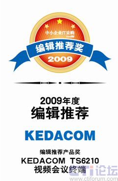 CTI論壇(ctiforum)05月20日消息: 近日,由《中小企業(yè)IT采購》舉辦的2009年度編輯推薦獎評測活動落下帷幕,科達TS6210視頻會議終端以其卓越的視音頻質(zhì)量、優(yōu)異的網(wǎng)絡(luò)適應(yīng)性、極高的性價比在本次評選活動中脫穎而出,獲此殊榮。