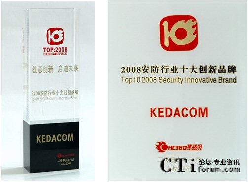 科達榮獲“2008安防行業(yè)十大創(chuàng)新品牌”