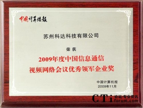 科達獲中國信息通信視頻網(wǎng)絡會議優(yōu)秀領軍企業(yè)獎