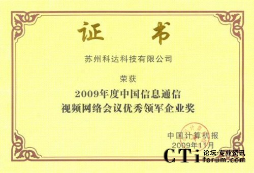 CTI論壇(ctiforum)12月24日消息(記者 潘婷):近日,在2009中國信息通信產業(yè)年度評選活動中,科達憑借優(yōu)秀的品牌效應和領先的市場占有率榮獲“中國信息通信視頻網(wǎng)絡會議優(yōu)秀領軍企業(yè)獎”。