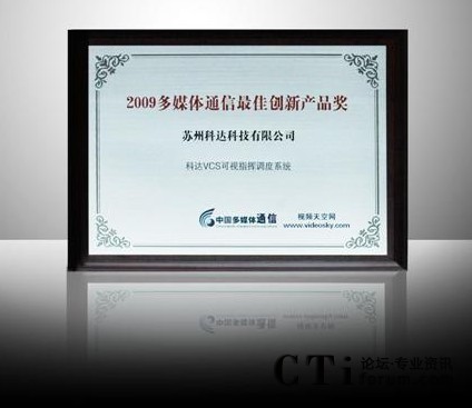 CTI論壇(ctiforum)3月29日消息(記者 袁青):近日,在《中國多媒體通信》雜志及視頻天空網(wǎng)強勢啟動的“2009年度中國多媒體通信行業(yè)大獎”評選活動中,科達VCS可視指揮調(diào)度系統(tǒng)以其產(chǎn)品的專業(yè)性、直觀性、準確性及有效性榮獲2009中國多媒體通信行業(yè)“創(chuàng)新產(chǎn)品獎”。