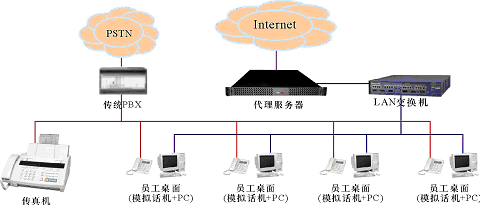 。。某中小企業(yè),無分支機(jī)構(gòu),現(xiàn)時有一個由傳統(tǒng)PBX構(gòu)建的電話系統(tǒng)和一個以太局域網(wǎng),兩者相互獨立,局域網(wǎng)通過一臺代理服務(wù)器用以太網(wǎng)或ADSL方式接入Internet。企業(yè)的語音通信由電話系統(tǒng)實現(xiàn);員工的日常工作需要使用計算機(jī)以及多種局域網(wǎng)和Internet服務(wù)(如文件共享、網(wǎng)絡(luò)打印、瀏覽網(wǎng)頁、收發(fā)郵件等),這些服務(wù)通過局域網(wǎng)提供,目前,在企業(yè)的經(jīng)營管理上還沒有應(yīng)用相關(guān)的業(yè)務(wù)系統(tǒng)(如工作流、ERP、CRM等)。