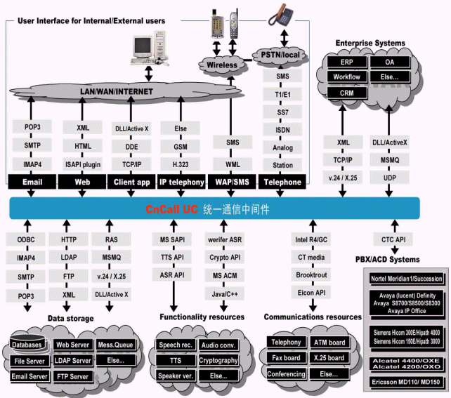 華呼UC統(tǒng)一通信平臺(tái)是通用的通信開發(fā)平臺(tái),提供功能強(qiáng)大而又迅速的開發(fā)技術(shù)來建立復(fù)雜的企業(yè)通信服務(wù)。這些技術(shù)包括CTI、SoftACD、IVR、傳真、手機(jī)SMS、固定電話SMS、Paging、各類數(shù)據(jù)通信、電子郵件、VXML、HTML、ASR、TTS、WAP、數(shù)據(jù)庫接入、語音證實(shí)和加密等。提供標(biāo)準(zhǔn)接口讓我們方便的與企業(yè)CRM\ERP\OA等應(yīng)用系統(tǒng)連接。華呼UC統(tǒng)一通信平臺(tái)提供方便的圖形開發(fā)環(huán)境,無須學(xué)習(xí)硬件或軟件的API接口,把最好的技術(shù),產(chǎn)品和工業(yè)標(biāo)準(zhǔn)集成到一個(gè)面向?qū)ο蟮恼Z言環(huán)境中,提供給開發(fā)人員各種構(gòu)件,創(chuàng)建應(yīng)用程序的過程只是按流程圖的方式把不同的構(gòu)件塊聯(lián)在一起,沒有用戶數(shù)或端口數(shù)的限制,系統(tǒng)可以隨應(yīng)用相應(yīng)擴(kuò)容。