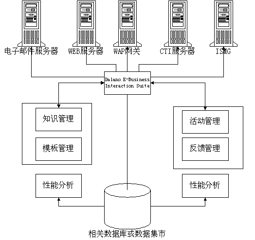 在易虹eCRM解決方案中,電子化營(yíng)銷(xiāo)是建立在交互式電子商務(wù)平臺(tái)之上的。下圖給出了易虹eCRM解決方案中的電子化營(yíng)銷(xiāo)系統(tǒng)解決方案: