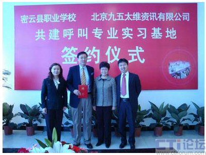 CTI論壇(ctiforum)04月30日消息: 近日,密云縣職業(yè)學(xué)校與北京九五太維資訊有限公司校企合作共建呼叫專業(yè)實(shí)習(xí)基地簽約儀式在密云縣職業(yè)學(xué)校隆重舉行,市教委職成處處長李敏,縣委常委副縣長王春林、副縣長錢福生、副縣長徐芳出席簽約儀式并發(fā)表了講話。密云縣教委主任李鐘勤,北京九五太維資訊有限公司董事長汪遠(yuǎn),首席執(zhí)行官李寶民及其培訓(xùn)師團(tuán)隊(duì),密云縣經(jīng)濟(jì)開發(fā)區(qū)總公司及部分入?yún)^(qū)呼叫企業(yè)出席了簽約儀式。在簽約儀式上,密云縣教委主任李鐘勤向九五太維公司首席執(zhí)行官李寶民博士頒發(fā)了聘書,聘請李寶民博士為密云縣職業(yè)學(xué)校名譽(yù)校長。