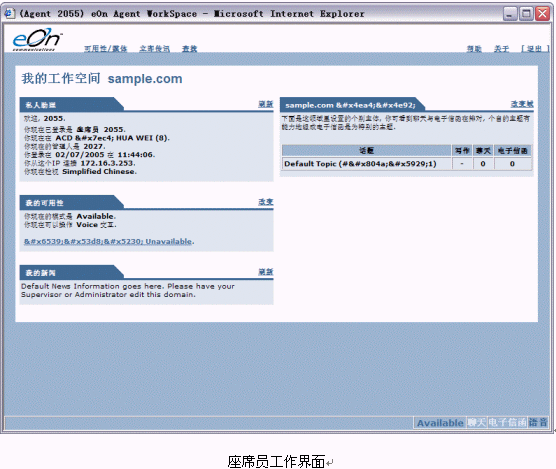 用戶在第一次登陸時,在IE的地址欄中正確鍵入WorkSpace的IP地址便可以進入WorkSpace的歡迎頁面。在該頁面上顯示有座席員工作空間(Agent