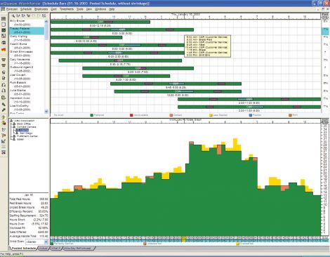eQueue人力資源管理系統(tǒng)允許管理者在實(shí)施新的服務(wù)標(biāo)準(zhǔn)之前對(duì)調(diào)整帶來的影響進(jìn)行檢測(cè)。What-If功能可以被用于檢測(cè)各種不同的全職和兼職座席服務(wù)混合比例對(duì)成本和服務(wù)級(jí)別影響。