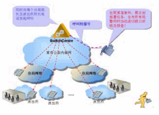 在公安系統(tǒng)中,有時(shí)候出現(xiàn)緊急案件,需立刻部署任務(wù),例如要求全市所有民警同時(shí)出動(dòng)進(jìn)行路口封鎖及排查!如果一個(gè)一個(gè)打電話通知將會(huì)很麻煩,如果有電話廣播功能將是很方便的,可以同時(shí)接通很多電話,將命令廣播下去。華為3Com公司V2oIP系統(tǒng)在強(qiáng)大的GK支持下,只要事先定義了特服號(hào)對應(yīng)的電話號(hào)碼群組,撥通特服號(hào)就能實(shí)現(xiàn)電話廣播。