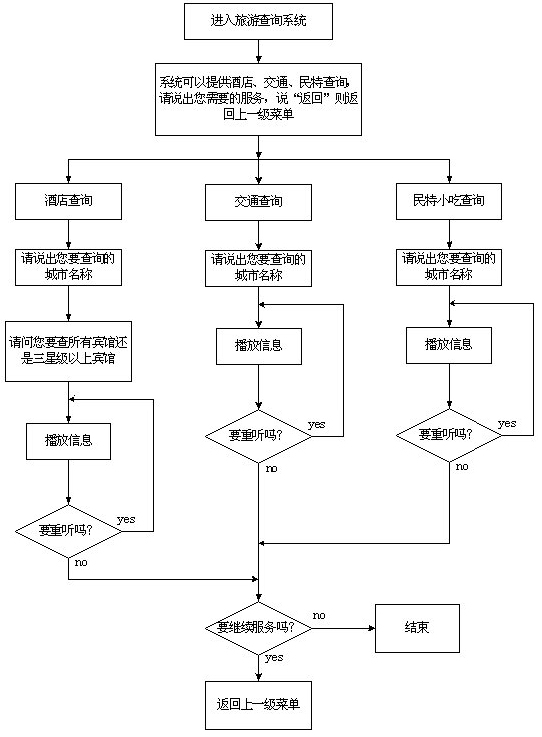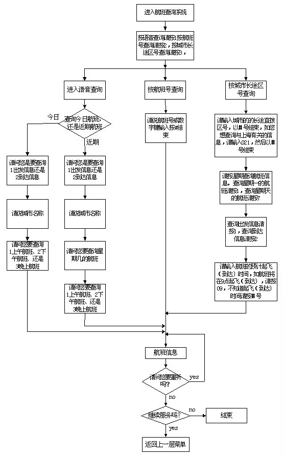 該系統(tǒng)主要采用語音技術實現(xiàn)航班信息查詢,系統(tǒng)的主業(yè)務流程如圖一至五示。