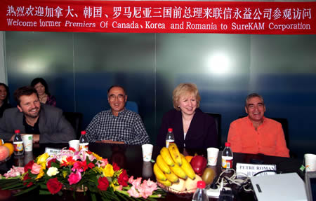 日前,加拿大前總理金·坎貝爾女士、韓國前總理李洪九、羅馬尼亞前總理彼得·羅曼一行受中國人民外交學會的邀請來華進行訪問,旨在促進三國與中國人民之間的友好往來和了解我國的社會經濟發(fā)展。9月3日,中國人民外交學會安排這三國前總理來到中關村科技園區(qū)的北京聯(lián)信永益科技有限公司參觀,了解中關村新技術開發(fā)區(qū)內中小企業(yè)發(fā)展和創(chuàng)業(yè)情況。