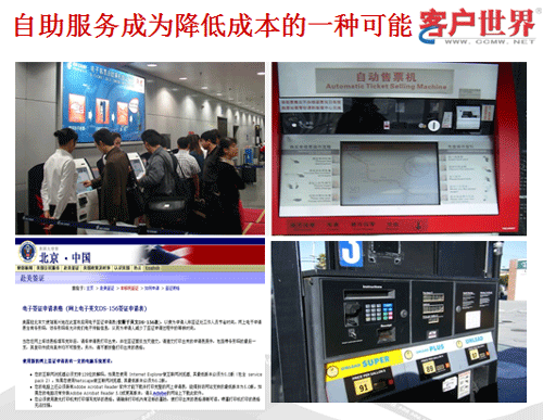 我想自助服務(wù)成為降低成本的一種手段已經(jīng)不是什么新話題。我這次去美國,感觸特別深刻,今天的華盛頓機(jī)場,當(dāng)你去UA柜臺check in的時(shí)候已經(jīng)幾乎沒有人了,基本靠自助服務(wù),你自己check in,自己把行李條貼上。我們?nèi)ッ绹笫桂^辦簽證,他們只收電子表格的申請。什么是電子表格,就是你得在美國大使館網(wǎng)站上把你的信息輸進(jìn)去,等于你幫助美國大使館節(jié)約了輸入費(fèi)用。我想今天無論在上海還是北京,在中國很多行業(yè)已經(jīng)開始使用自助手段,我們無法逃避這樣一個現(xiàn)實(shí)。