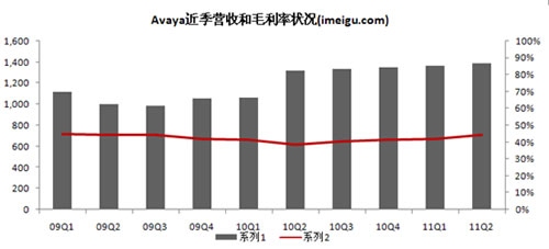 2008、2009、2010財年Avaya總營收分別為49.23億美元、41.50億美元、50.60億美元,2009財年營收受宏觀經(jīng)濟(金融海嘯)因素影像而出現(xiàn)15.7%的下降,2010財年Avaya公司收購原北電的企業(yè)通信部門(NES),受此合并報表影響和經(jīng)濟復(fù)蘇因素,2010財年營收相比2009財年增長21.9%。