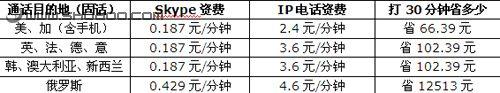 3G手機(jī)用Skype和固定電話通話的資費(fèi)與傳統(tǒng)IP電話相比如何呢?見(jiàn)下表: