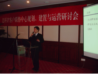 2點(diǎn)整,主持人宣布會(huì)議正式開始。首先是正音科技公司執(zhí)行副總秦裕農(nóng)先生致開幕詞。秦先生從2000多年前的周幽王烽火戲諸侯娓娓道來,一直講到IP技術(shù)在音頻、視頻上的應(yīng)用,為大家生動(dòng)形象地描述了通訊技術(shù)發(fā)展的歷程。在演講的最后,秦先生指出了一個(gè)客戶聯(lián)絡(luò)中心所應(yīng)該具備的特性:"在這個(gè)客戶聯(lián)絡(luò)中心里,客戶應(yīng)該能夠隨時(shí)隨地的通過電話、傳真、郵件、網(wǎng)絡(luò)電話、文字聊天、web協(xié)同等各種各樣的方式,第一時(shí)間找到企業(yè),解決他們的問題;在這個(gè)客戶聯(lián)絡(luò)中心里,企業(yè)能夠廉價(jià)地把分布于全國(guó)各地的服務(wù)資源聯(lián)系起來,進(jìn)行統(tǒng)籌管理,統(tǒng)一為客戶提供服務(wù);在這個(gè)客戶聯(lián)絡(luò)中心里,企業(yè)可以隨時(shí)把一個(gè)空閑的客戶服務(wù)人員調(diào)整為電話銷售人員,而不用去修改復(fù)雜系統(tǒng)設(shè)置;在這個(gè)客戶聯(lián)絡(luò)中心里,任何一個(gè)可以接入互聯(lián)網(wǎng)的員工,不管他身在地球的哪一個(gè)角落,都可以隨時(shí)隨地的接入系統(tǒng),變成一個(gè)坐席,為客戶提供專業(yè)的服務(wù)。"秦先生描述的這個(gè)完美的客戶聯(lián)絡(luò)中心立即博得了陣陣掌聲,同時(shí)也引起了與會(huì)者的極大興趣,如何才能實(shí)現(xiàn)這個(gè)猶如夢(mèng)中的呼叫中心呢?"相信通過今天的研討會(huì),各位會(huì)得到了一個(gè)滿意的答案",秦先生最后自信的向大家保證。