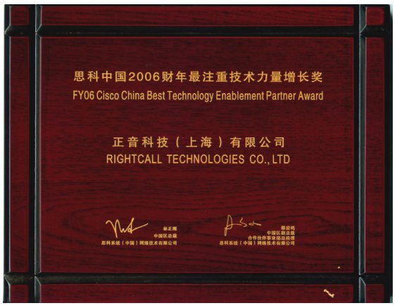 正音科技榮獲“思科中國(guó)2006財(cái)年最注重技術(shù)力量增長(zhǎng)獎(jiǎng)”