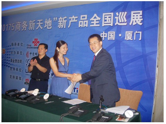 2007年6月27日,中寬網(wǎng)信”101756商務(wù)新天地”新產(chǎn)品全國(guó)巡展廈門站在廈門喜來(lái)登酒店勝利召開(kāi)。會(huì)議的主旨是向中小企業(yè)及呼叫中心用戶推出個(gè)性化的通信增值服務(wù)方案,提高企業(yè)競(jìng)爭(zhēng)力;同時(shí)為投資者提供投資小回報(bào)快的投資項(xiàng)目。此次會(huì)議得到了中國(guó)聯(lián)通的大力支持,廈門聯(lián)通數(shù)據(jù)部副總監(jiān)林長(zhǎng)春先生表示中國(guó)聯(lián)通十分看好中國(guó)電信融合市場(chǎng)的巨大產(chǎn)業(yè)機(jī)會(huì),有信心與中寬網(wǎng)信真誠(chéng)合作,利用雙方各自平臺(tái)優(yōu)勢(shì),深度合作,資源互補(bǔ),共同參與激烈的電信市場(chǎng)競(jìng)爭(zhēng)。