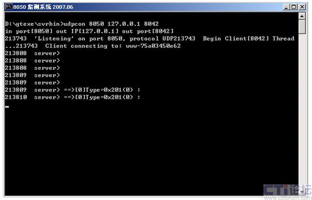 監(jiān)控后臺運(yùn)行dispsvr.bat(d:\gtexe\bin>udpcon 8050 127.0.0.1 8042)