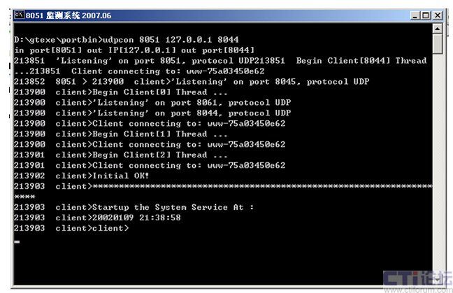 監(jiān)控后臺運(yùn)行dispport.bat(d:\gtexe\bin>udpcon 8051 127.0.0.1 8044)