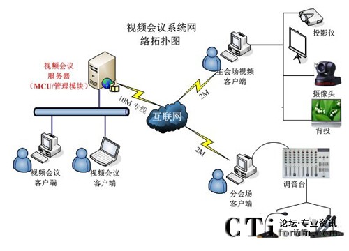 根據(jù)河南送變電建設(shè)公司的網(wǎng)絡(luò)現(xiàn)狀和現(xiàn)有的IT硬件資源以及各級(jí)各部門間的溝通協(xié)作需要,視維設(shè)計(jì)了一套可行的視頻會(huì)議系統(tǒng)解決方案,其網(wǎng)絡(luò)拓?fù)鋱D如下: