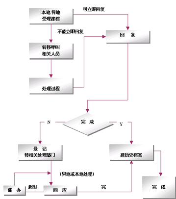 整個(gè)網(wǎng)絡(luò)采用只在集中受理中心設(shè)立一個(gè)集中監(jiān)控系統(tǒng),負(fù)責(zé)監(jiān)控全網(wǎng)的客戶業(yè)務(wù)、服務(wù)、技術(shù)支持和投訴等等業(yè)務(wù),該系統(tǒng)基于事件管理的思想,提供包括創(chuàng)建、解決、分配、反饋、跟蹤、回訪等節(jié)點(diǎn)在內(nèi)的閉環(huán)處理模式。例如系統(tǒng)可以根據(jù)客戶反映問(wèn)題的時(shí)間以及緊急程度,按照系統(tǒng)約定的處理時(shí)限對(duì)處理過(guò)程實(shí)時(shí)跟蹤和記錄,當(dāng)處理超時(shí)時(shí)回自動(dòng)給出報(bào)警信息,提示相關(guān)的操作人員及主管人員。同時(shí)根據(jù)約定還可以將受理的問(wèn)題按照約定的方式自動(dòng)發(fā)送到相關(guān)的處理部門(mén),由處理部門(mén)進(jìn)行處理。