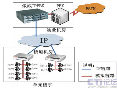 現(xiàn)有XX物業(yè)公司,所管轄的小區(qū)20棟樓共計240戶,網(wǎng)絡布線已經(jīng)到每個單元樓里的網(wǎng)絡交換機,并且在每個單元樓內(nèi)部,已經(jīng)將網(wǎng)絡線和電話線分別布線到樓宇中的每個家庭住戶。但從物業(yè)機房到每個單元樓的電話線沒有放置。客戶要求省去從物業(yè)機房中心到每棟樓的重新布線,并讓每個家庭都能有電話接入。實現(xiàn)每個家庭都可以電話接聽和撥打外線,并且讓每家住戶感覺不到和使用傳統(tǒng)的線路的區(qū)別。