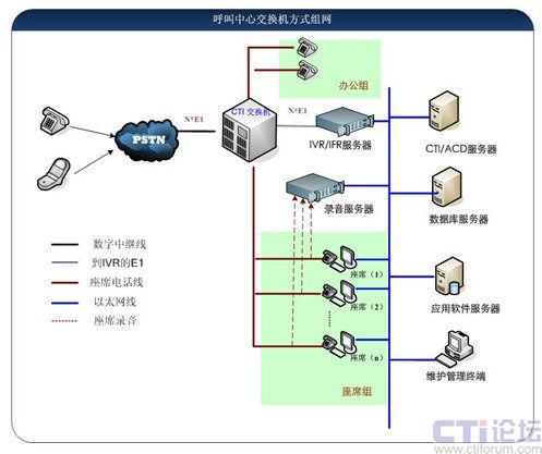 圖二:辦公與呼叫中心融合的物理組網(wǎng)圖