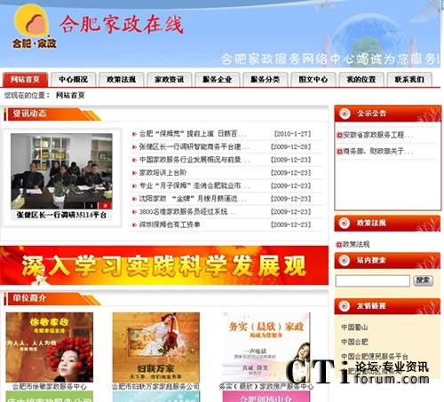 CTI論壇(ctiforum)3月5日消息(記者 楊毅):2009年末,由深圳市深海捷科技有限公司(簡稱“深海捷”)提供技術支持的合肥家政服務網(wǎng)絡中心正式上線。合肥家政網(wǎng)絡中心是安徽省商務部第一批批準建立的家政服務網(wǎng)絡中心,合肥家政網(wǎng)絡中心的建立為安徽全省的家政服務建設提供了極大地參考標準。市民足不出戶,通過登錄合肥家政服務網(wǎng)絡中心官方網(wǎng)站:http://web1.35114.cc/WebSite/51628/index.shtm即可找到滿意的家政服務。