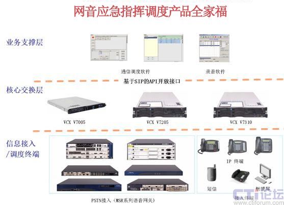 “呼叫控制層”指應(yīng)用解決方案的核心組件-軟交換平臺VCX V7000,VCX V7000特點(diǎn)如下:   “信息接入/調(diào)度終端”多種不同類型的PSTN接入網(wǎng)關(guān)提供豐富的接入方式,并有多種IP調(diào)度終端可供選擇。