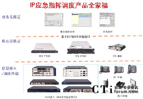2、“呼叫控制層”指應用解決方案的核心組件-軟交換平臺VCX V7000,VCX V7000特點如下:
