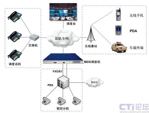 在調(diào)度終端方面,室內(nèi)可以采用調(diào)度話機(jī),包括既有的傳統(tǒng)電話分機(jī);室外主要分為人員和裝備,移動(dòng)人員可以采用專用PDA登錄到系統(tǒng)中,實(shí)現(xiàn)調(diào)度作業(yè)與單呼、群呼;車輛裝備可以安裝車載終端實(shí)現(xiàn)調(diào)度指令的接收和語(yǔ)音通信。