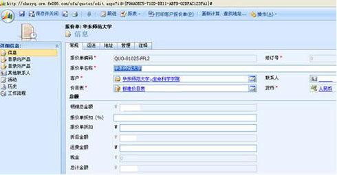 風云在線產(chǎn)品實施部門在對客戶需求充分調(diào)研和評估之后,根據(jù)上海新振公司目前所面臨的業(yè)務上的具體問題,為新振公司量身定做了一套基于SaaS平臺運營的Microsoft Dynamics TM CRM4.0 CRM系統(tǒng),系統(tǒng)功能覆蓋了基本業(yè)務流程管理、市場營銷自動化管理、銷售管理、訂單管理、發(fā)票管理、產(chǎn)品管理等銷售工作的各個環(huán)節(jié),完全實現(xiàn)了銷售工作的標準化、規(guī)范化、流程化、自動化,深受銷售人員和銷售經(jīng)理的認同。