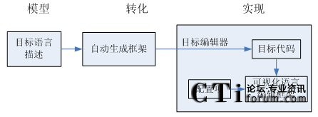 3.目標(biāo)編輯器的配置和自動生成,其基本設(shè)計思想是將所有可視化語言編輯器都共有的部分和變化的部分分離,由基礎(chǔ)框架實現(xiàn)共有部分,而變化部分采用自動生成和系統(tǒng)配置的方法實現(xiàn)。
