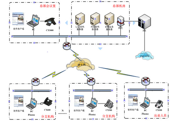 在方案的推進(jìn)過程中,我們在各大會議室部署了CX3000、在桌面分別部署了CX600與IP331。通過這些終端的自身的優(yōu)勢及與系統(tǒng)的配合,實(shí)現(xiàn)了完整的電話體驗(yàn)、PSTN無縫結(jié)合、LYNC完整的企業(yè)級語音功能、 高清晰語音質(zhì)量 、專業(yè)的語音會議等用戶需求,F(xiàn)在此方案在鳳凰網(wǎng)的會議室及桌面的應(yīng)用效果良好,場景應(yīng)用圖如下: