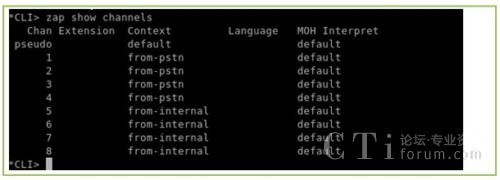 上面的輸出表示A1200P的通道都已識別,驅(qū)動安裝成功(本文用的是8個FXS口,上面的channel 01到channel 08是FXs口,后面的FXO表示它們使用的是FXO的信令,并不是表示它們是FXO口,這一點大家應(yīng)該注意)