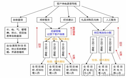 報修投訴、采購、人工咨詢及其他服務(wù)按統(tǒng)一的內(nèi)部流程處理,由各所屬項(xiàng)目座席受理后以短信或郵件的方式通知到各流程處理人員,處理完畢后反饋給項(xiàng)目座席,項(xiàng)目座席回訪并詢問服務(wù)滿意度,總部座席或管理座席隨機(jī)抽樣驗(yàn)證。處理過程超過一定的期限將定時報送給相關(guān)管理人員。這一流程不僅確保收到了客戶的真實(shí)感受,更對服務(wù)的及時性、規(guī)范性作了監(jiān)督,將大大提升XX物業(yè)對客戶的服務(wù)水平。