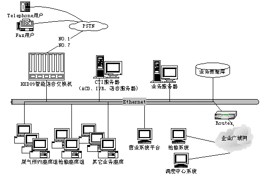 如何為客戶提供"一個電話對外"和"一站式"的服務便成了最急待解決的課題。隨著近年來CTI技術(shù)的蓬勃發(fā)展,特別是新一代智能語音交換機的推出,使這一問題迎刃而解。我們能夠方便地建設一套技術(shù)先進、穩(wěn)定高效、價格合理、適合于燃氣行業(yè)的呼叫中心。