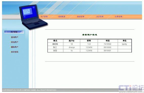 監(jiān)控功能:利用通話錄音、監(jiān)聽等手段,對服務(wù)質(zhì)量進(jìn)行監(jiān)控,實現(xiàn)對服務(wù)員的考核。