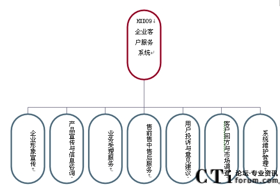 企業(yè)客戶(hù)服務(wù)中心系統(tǒng)的功能結(jié)構(gòu)如下圖所示: