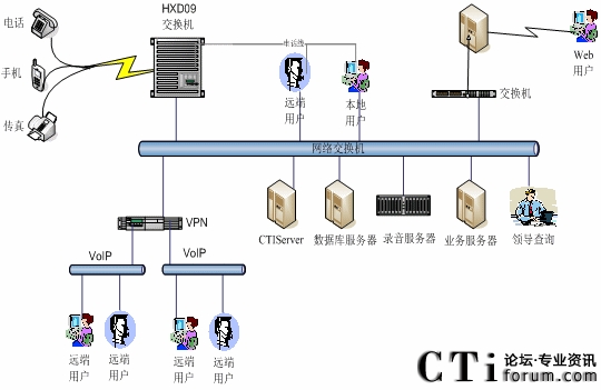 對(duì)于企業(yè)客戶(hù)服務(wù)中心系統(tǒng),選用行價(jià)比極高的hxd09可編程智能語(yǔ)音交換機(jī)作為語(yǔ)音接入設(shè)備,保障系統(tǒng)的高可靠性和穩(wěn)定性;同時(shí)具有良好的系統(tǒng)性能;以確保合理的、較少的投入,獲取最佳的配置,滿(mǎn)足不同企業(yè)()的需求。