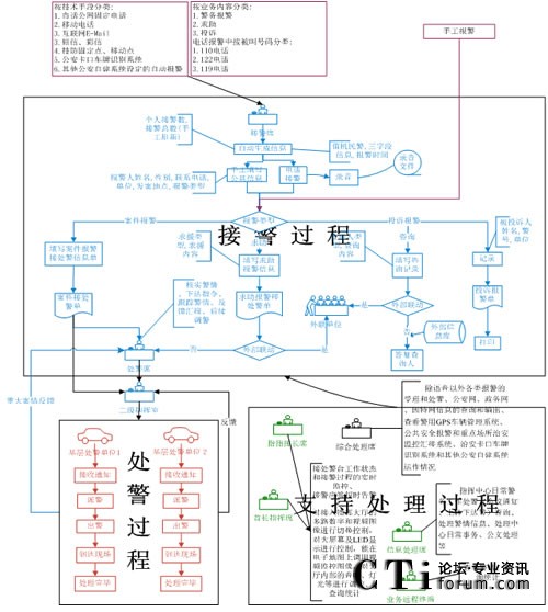 集成指揮調(diào)度系統(tǒng)的功能覆蓋了指揮調(diào)度的全部業(yè)務鏈,包括與110聯(lián)網(wǎng)處理警情、系統(tǒng)輔助下進行處警指揮、調(diào)度警力和救援部門、交通疏導指揮、交通警保衛(wèi)、自動記錄跟蹤處理情況、總結(jié)優(yōu)化指揮調(diào)度方案等業(yè)務工作。