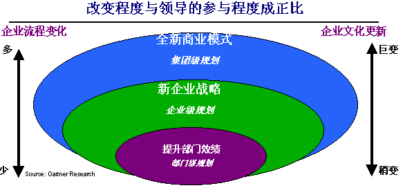 成功實(shí)施CRM的第一個(gè)關(guān)鍵是贏得企業(yè)的高層支持。高層支持的項(xiàng)目,或稱“一把手”工程,往往能夠推行得比較順利。在我們的實(shí)施中,最經(jīng)常項(xiàng)目牽頭人是客戶方負(fù)責(zé)運(yùn)營的老總或總經(jīng)理。企業(yè)要應(yīng)用CRM系統(tǒng),不應(yīng)當(dāng)僅僅是信息部門或銷售部門內(nèi)部的事情,而應(yīng)當(dāng)是整個(gè)企業(yè)在高層領(lǐng)導(dǎo)的直接參與指導(dǎo)之下的多方協(xié)同調(diào)整,因?yàn)镃RM涉及的是市場、銷售、服務(wù)等多個(gè)與客戶打交道的部門和流程。企業(yè)內(nèi)部的高層管理者必須承擔(dān)起項(xiàng)目負(fù)責(zé)人的角色,才能讓CRM實(shí)施順利地開展,才能完成部門之間的協(xié)同,才能實(shí)現(xiàn)企業(yè)內(nèi)部的文化轉(zhuǎn)變。高層參與的程度可以由下面的圖示說明: