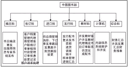 中圖公司圖書(shū)部的組織機(jī)構(gòu)和各科室負(fù)責(zé)的業(yè)務(wù)如圖所示。