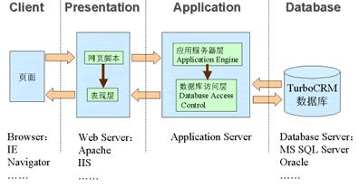 為了滿(mǎn)足移動(dòng)辦公和分布式管理的需求,CRM系統(tǒng)將更多采用基于Browser-Server架構(gòu)的多層結(jié)構(gòu)。B/S結(jié)構(gòu)的特點(diǎn)是在客戶(hù)端使用標(biāo)準(zhǔn)的Web頁(yè)面瀏覽器(如Internet Explorer等),不需安裝特殊的應(yīng)用程序,減少了升級(jí)和維護(hù)的難度;所有的業(yè)務(wù)數(shù)據(jù)都保存在Server端,確保了數(shù)據(jù)的安全;在通訊方面,由于使用標(biāo)準(zhǔn)的HTTP協(xié)議,使得系統(tǒng)可以輕松的實(shí)現(xiàn)移動(dòng)辦公和分布式管理。另外為了系統(tǒng)功能的可擴(kuò)展性,應(yīng)該采用將數(shù)據(jù)庫(kù)、應(yīng)用層及表現(xiàn)層分離的多層結(jié)構(gòu)。獨(dú)立的數(shù)據(jù)庫(kù)層便于支持多種數(shù)據(jù)庫(kù)系統(tǒng),將實(shí)現(xiàn)企業(yè)邏輯的應(yīng)用層獨(dú)立使業(yè)務(wù)邏輯的更新和擴(kuò)展更為方便,而當(dāng)需要支持手機(jī)、PDA等新的客戶(hù)端設(shè)備時(shí)只要對(duì)表現(xiàn)層進(jìn)行擴(kuò)充就可以實(shí)現(xiàn)。同時(shí),這種多層結(jié)構(gòu)也可以采用負(fù)載均衡與集群等技術(shù)實(shí)現(xiàn)系統(tǒng)的高可用性和性能的平滑擴(kuò)展。