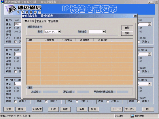 博達公司在IP電話認證的基礎上開發(fā)的IP電話計費計費系統(tǒng),實現(xiàn)了用戶管理、卡用戶批量生成、費率設置、折扣設置、話單查詢、帳務查詢、管理統(tǒng)計、運營分析等功能,為電信運營商的運營和企業(yè)用戶對IP電話的內(nèi)部管理和服務提供了有利條件。